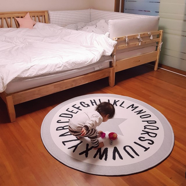 비염있는 가족들에게 너무 좋은 제품이예요ㅎ 아기놀이방에 인테리어용으로 깔아주려고했는데 짐 정리가덜되서 안방에 먼저 깔아봤더니 화사하게 분위기 살려주네요^^ 계속 안방에 깔아둘까봐요ㅎ 아기가 장난감을 하나 둘 들고오는거보니 맘에드나봅니다ㅎㅎ