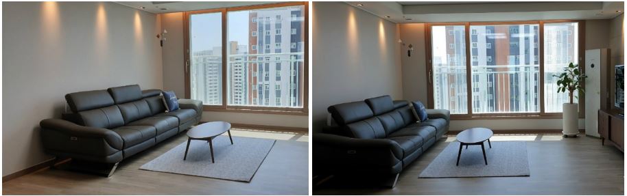 4인용 쇼파에서의 러그길이 비교하시면