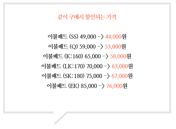 | LK | 라지킹 | 170 × 200 × 28 |