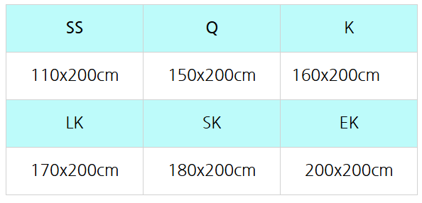 | SS | 슈퍼싱글 | 110 × 200 × 28 |