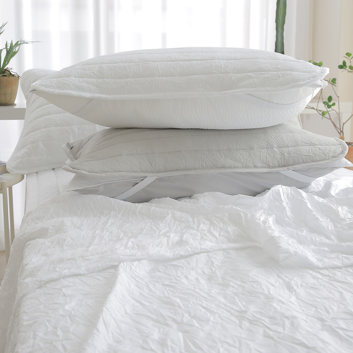 침구의 볼륨감과 통기성을 살렸습니다.