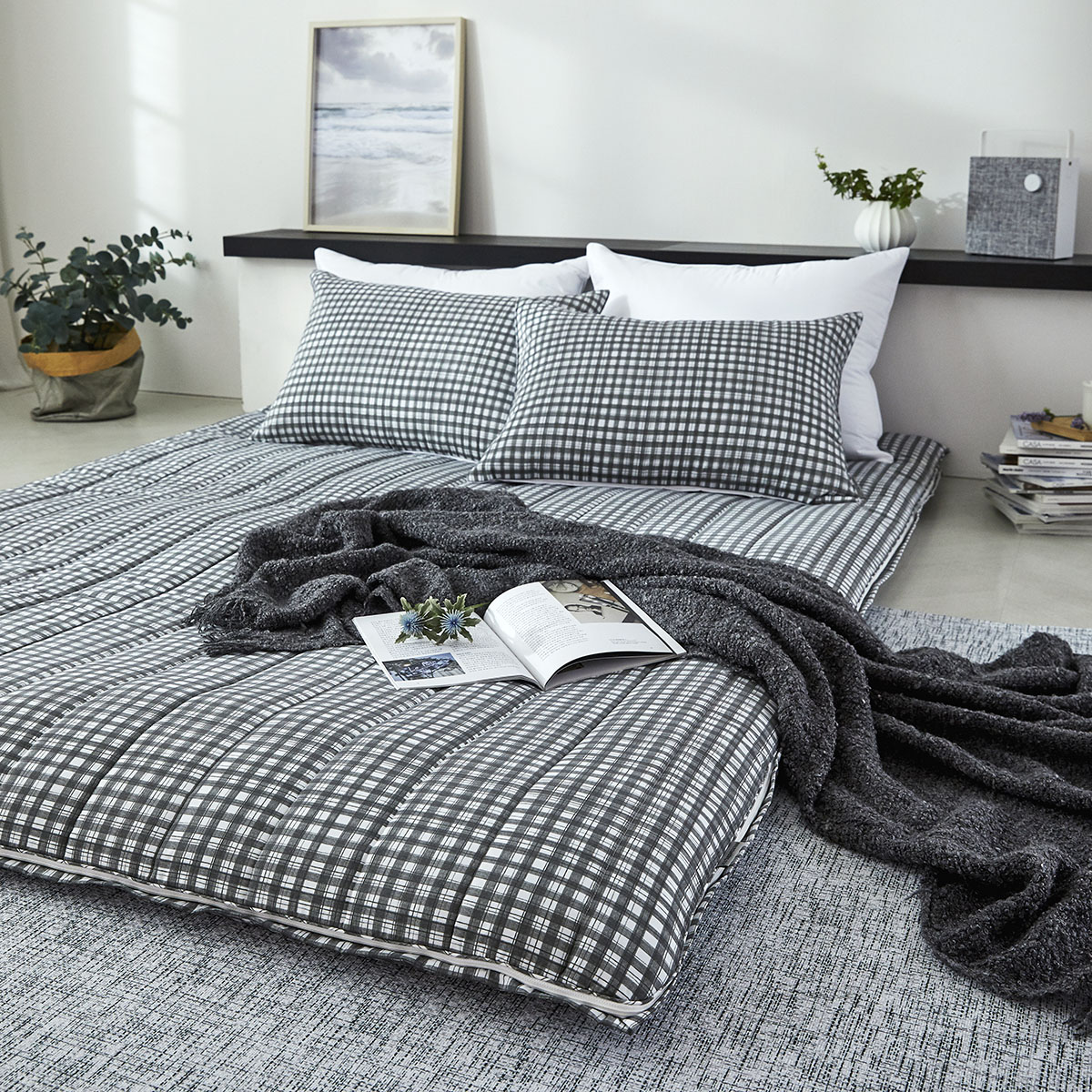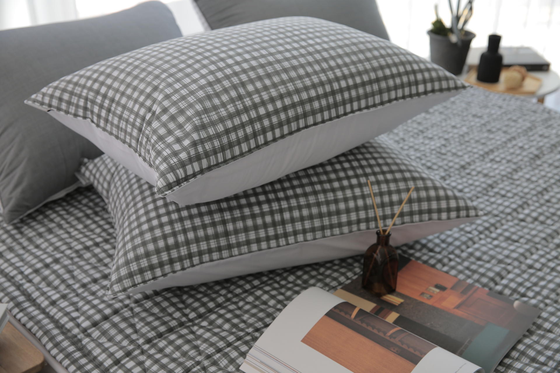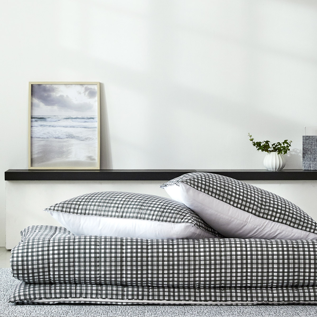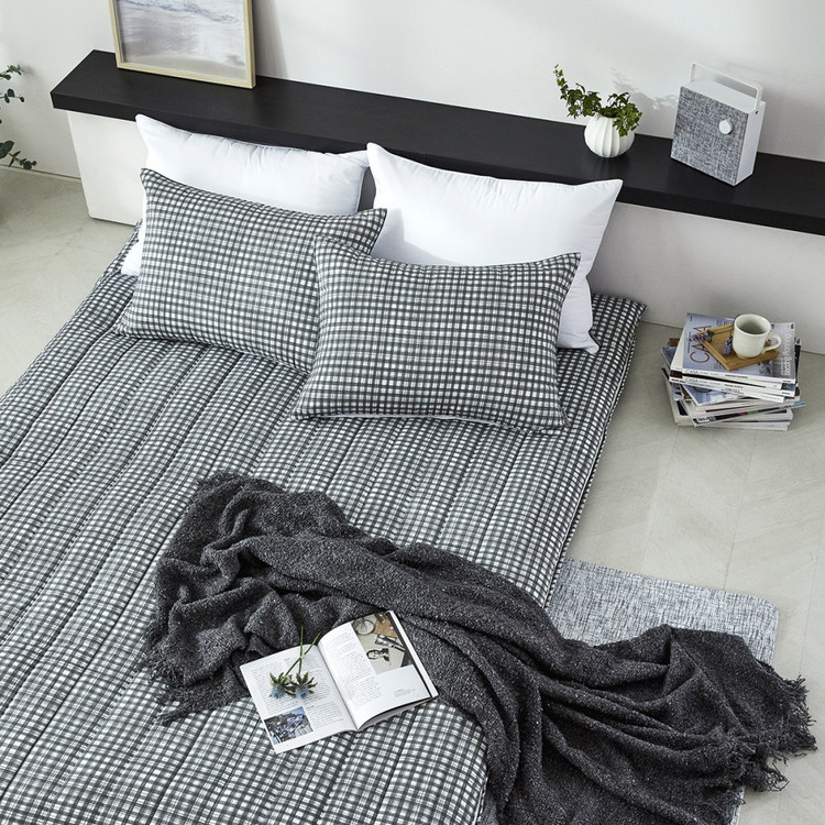 모달 알러지케어 차콜체크 누빔베개커버