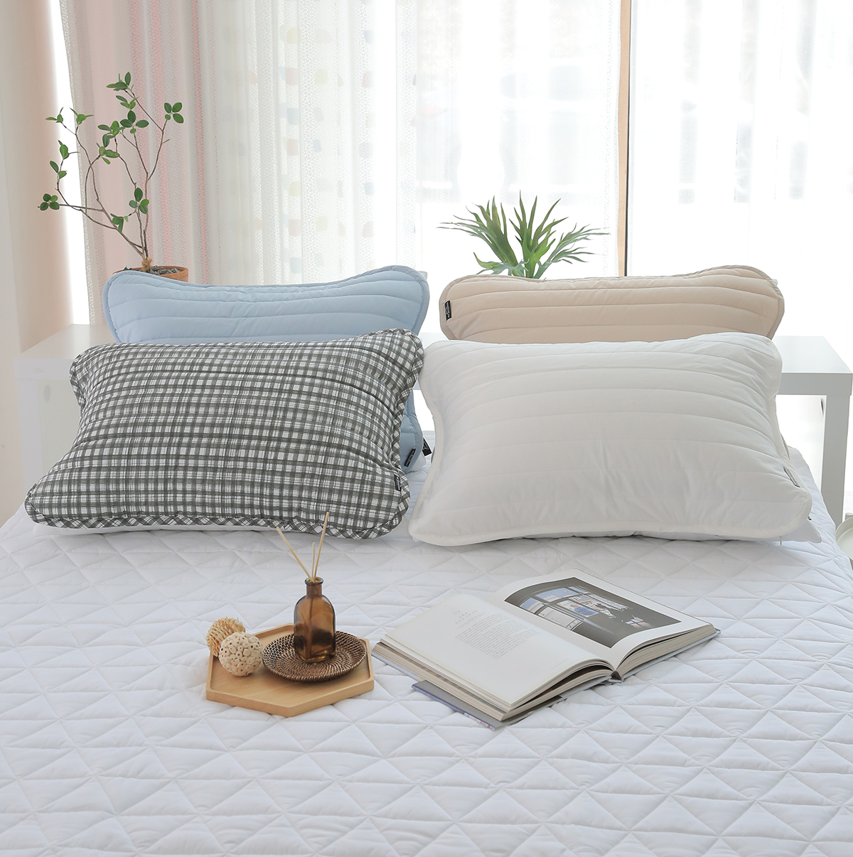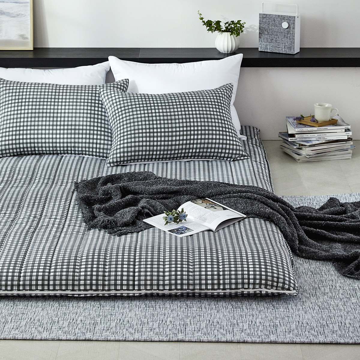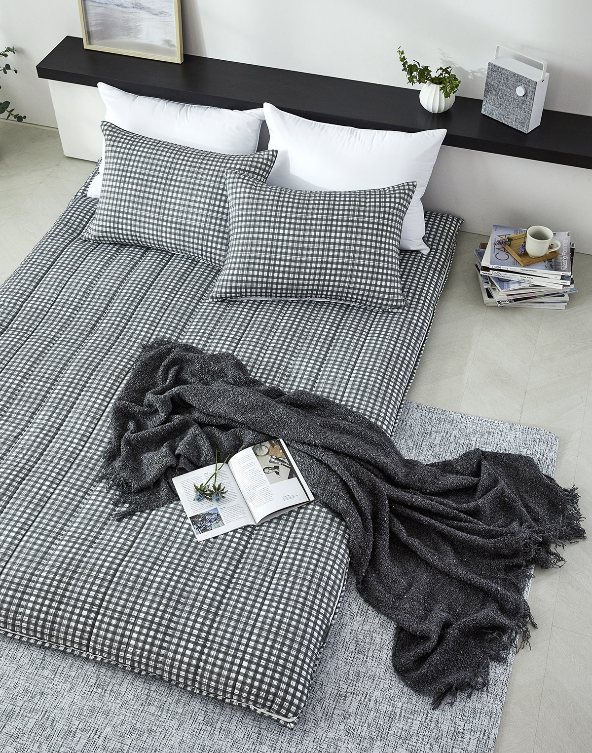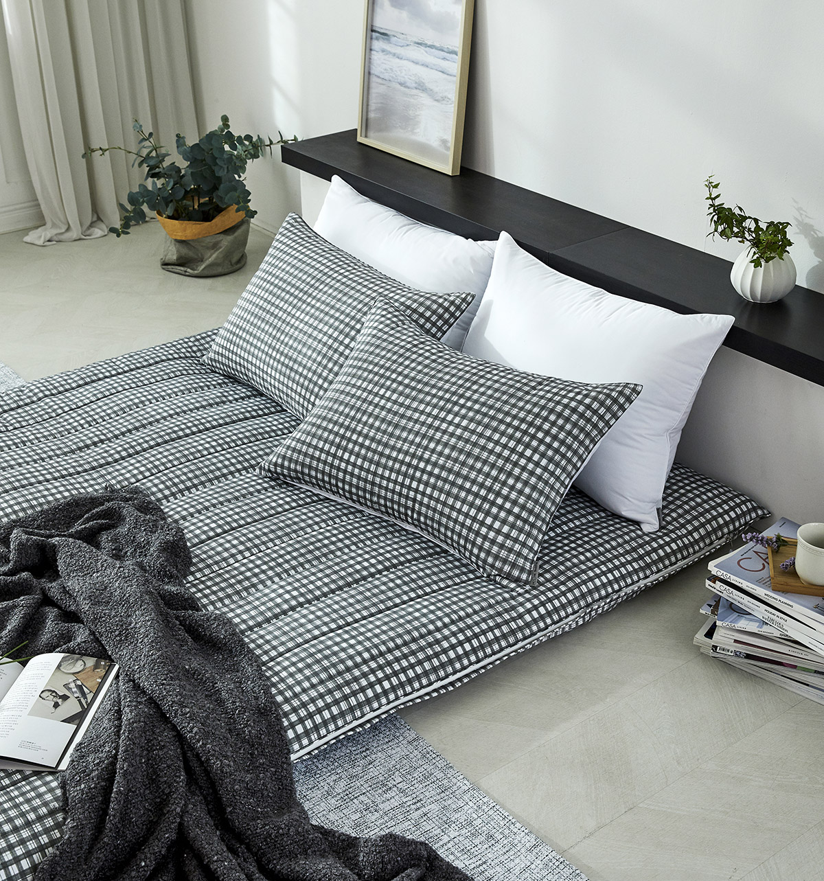 모달 알러지케어 차콜체크 누빔베개커버