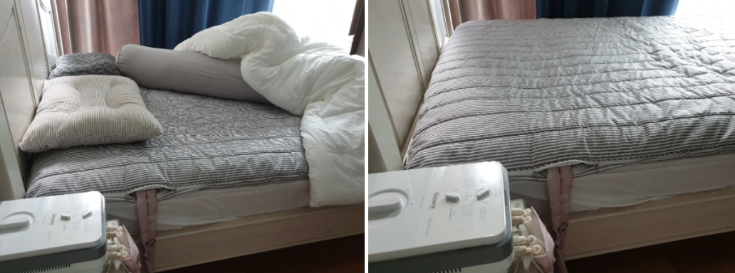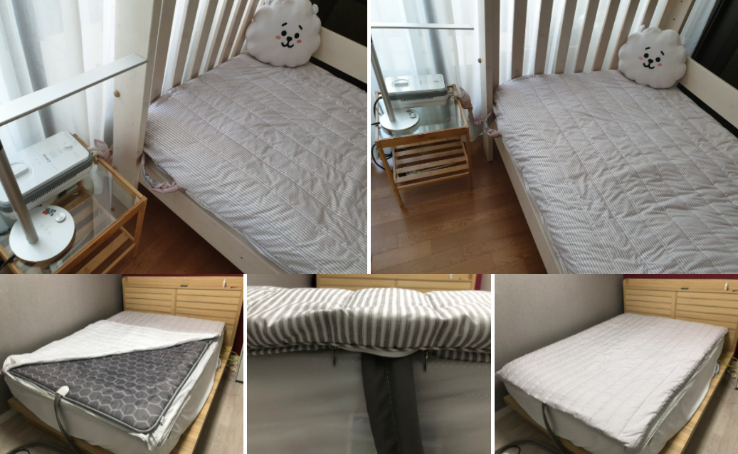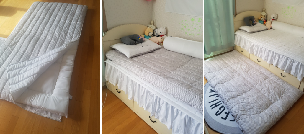 평소에는 요솜을 넣어서 침대토토퍼로 사용하고 겨울에는 온수매트 넣어서 사용하니 너무 좋아요 물론 손님오실때 바닥이불로 활용도도 갑입니다요~