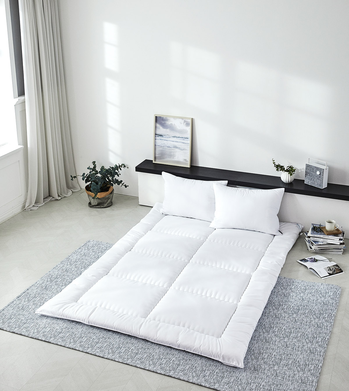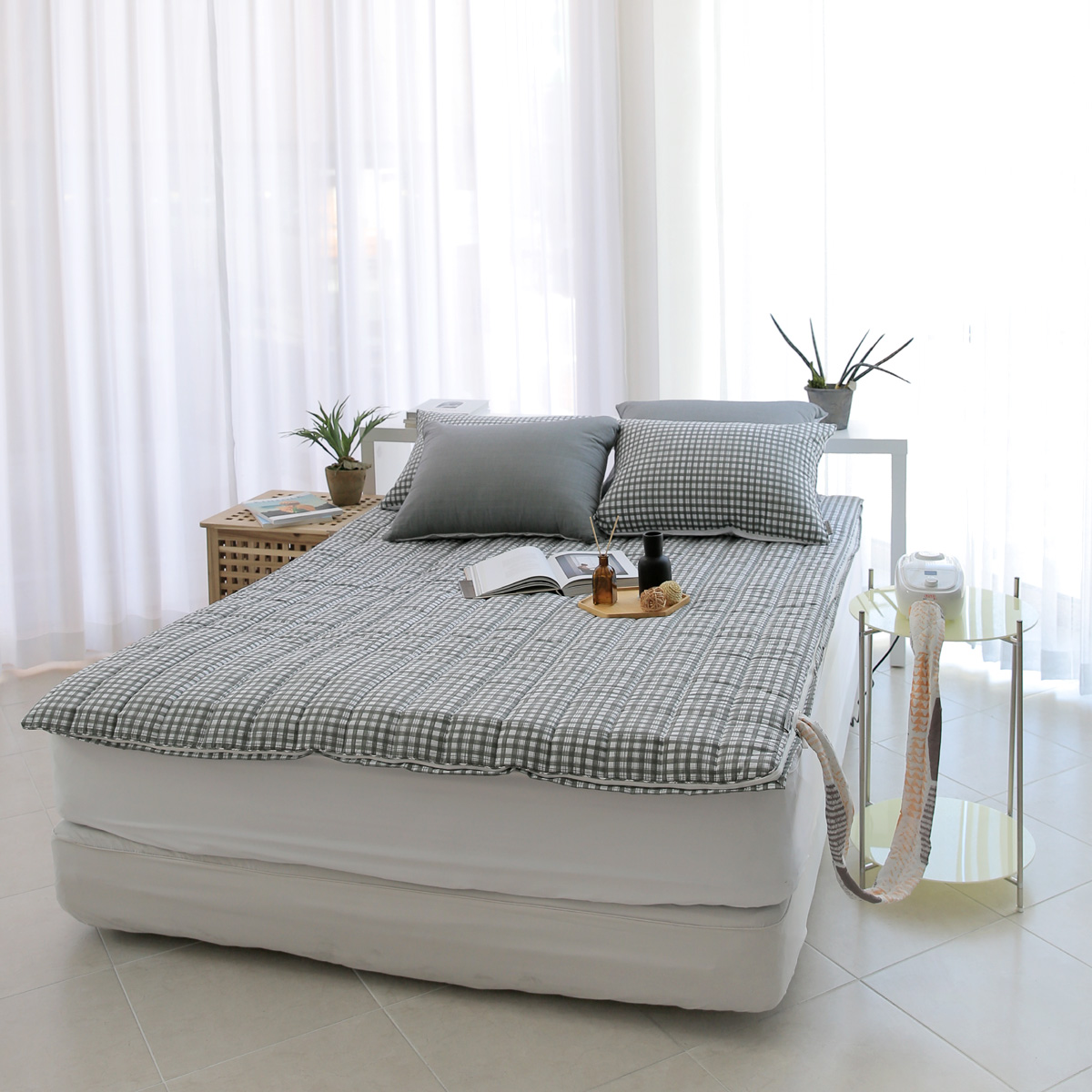 이렇게 침대위에 토퍼만 올려두어도