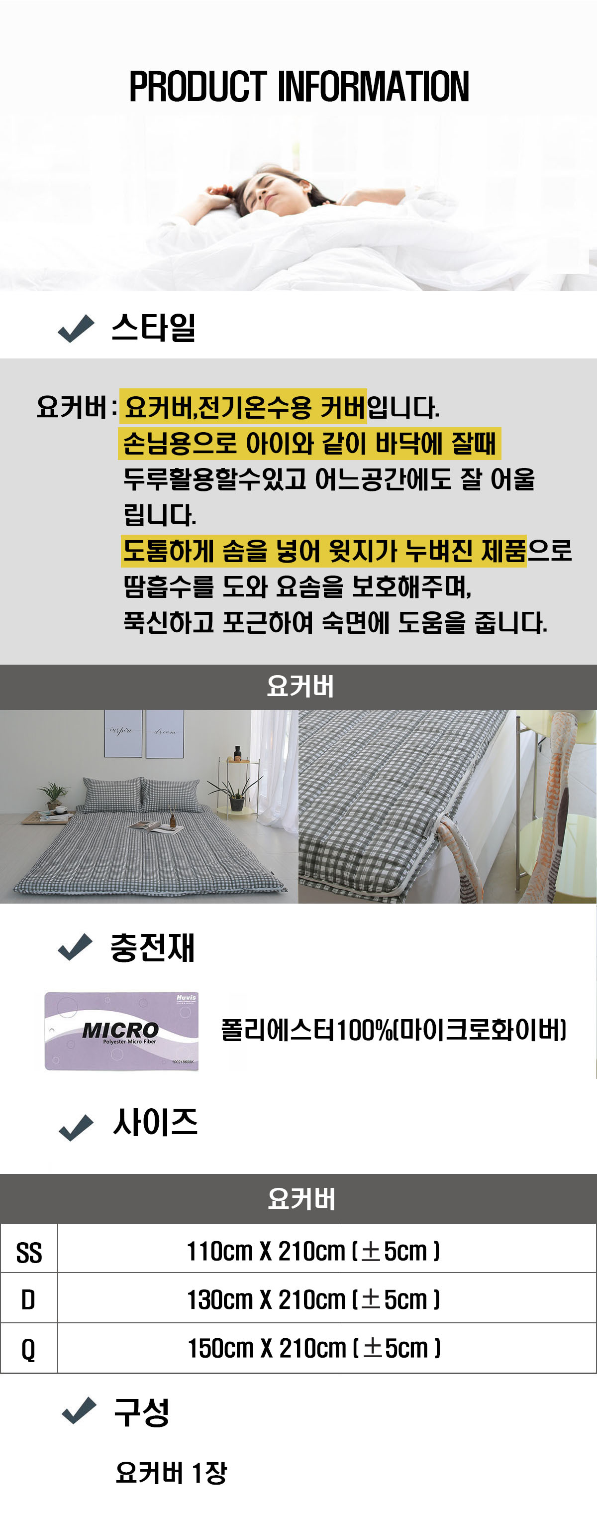 - 110 x 210 cm (SS) 요커버 1장