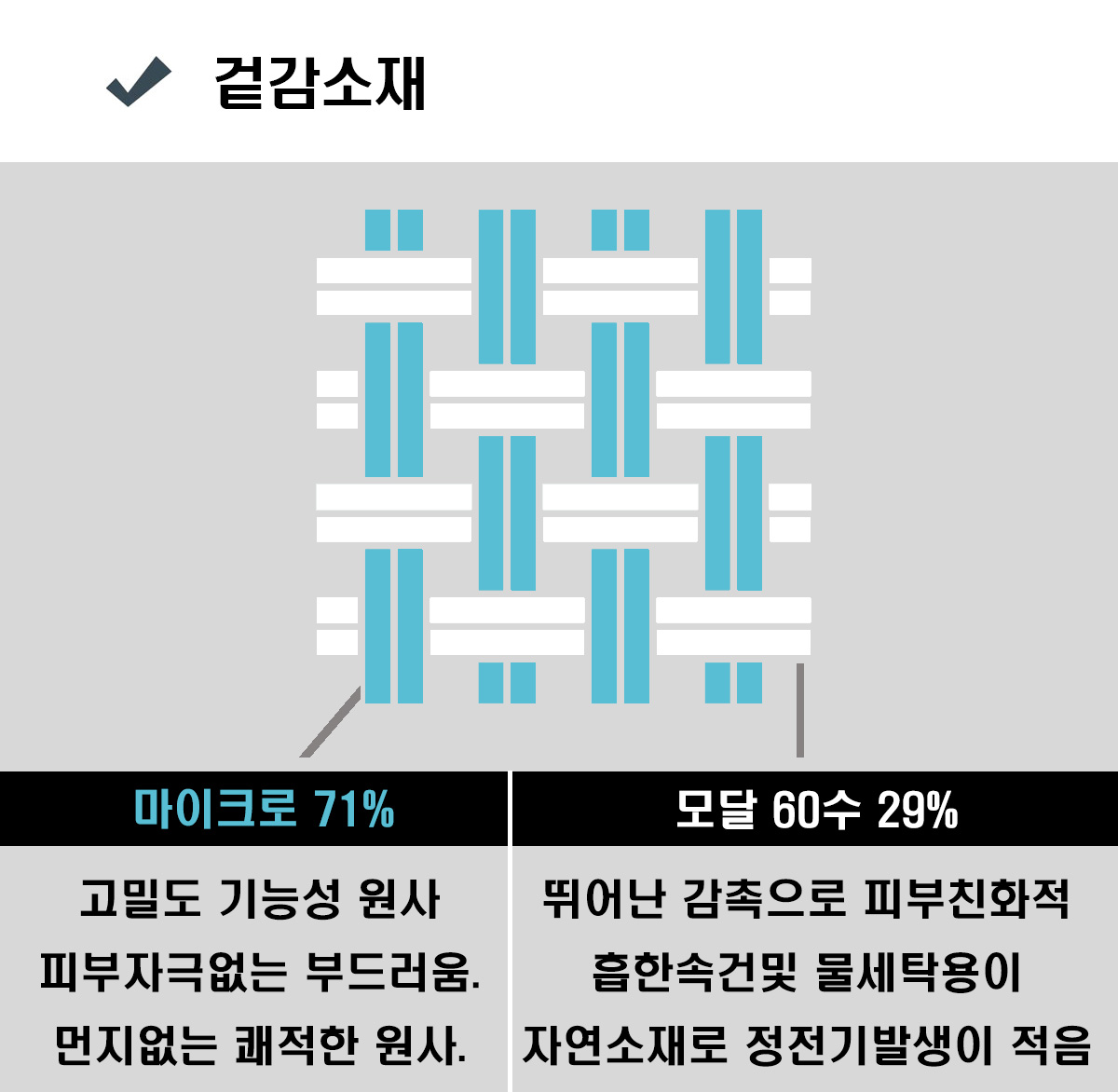 겉감: 마이크로화이바 (폴리에스터 100%)