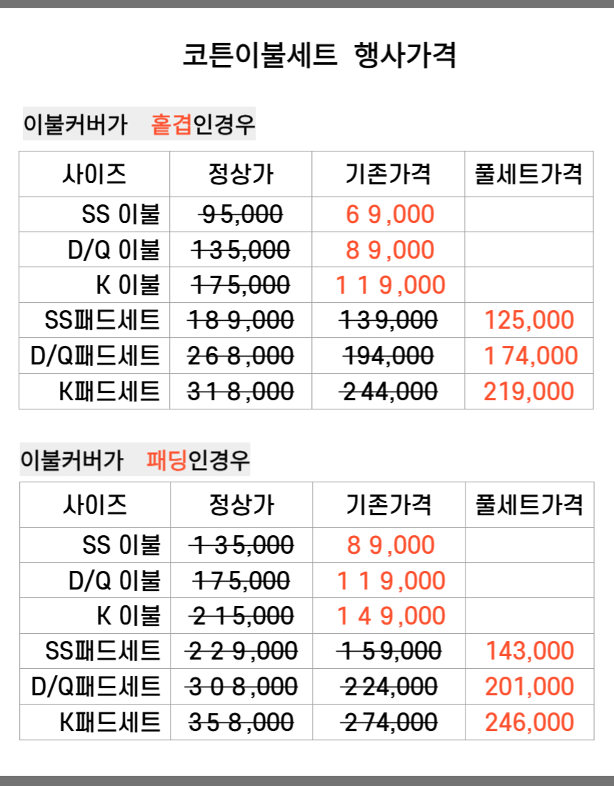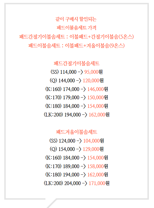 사계절 이불솜 (9온스) / 간절기 이불솜(5온스)