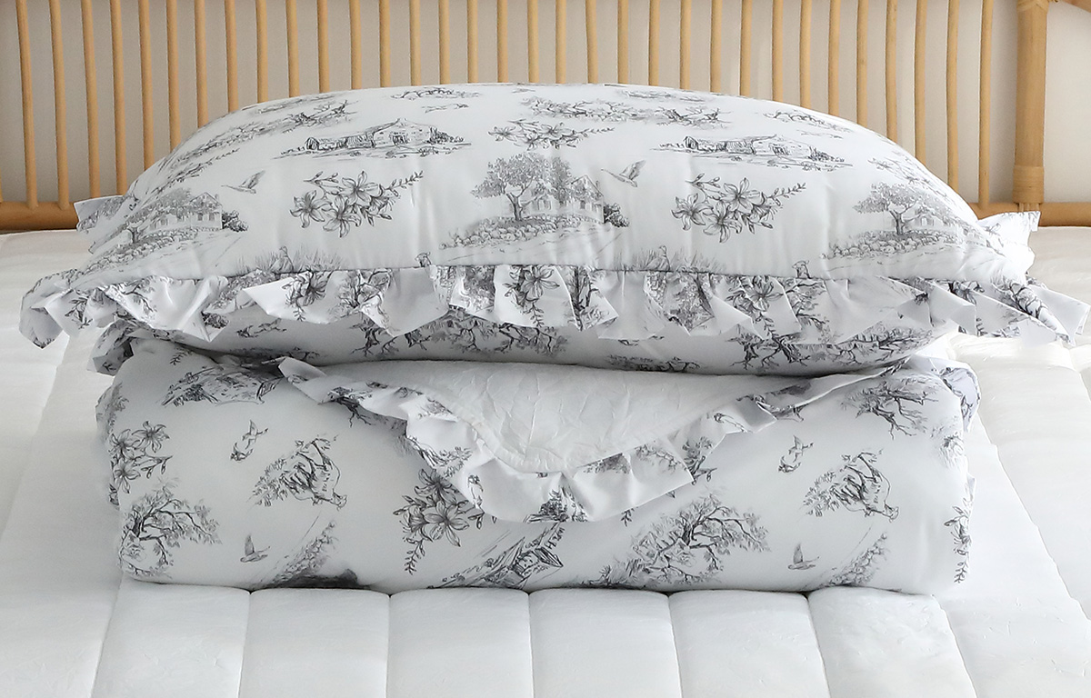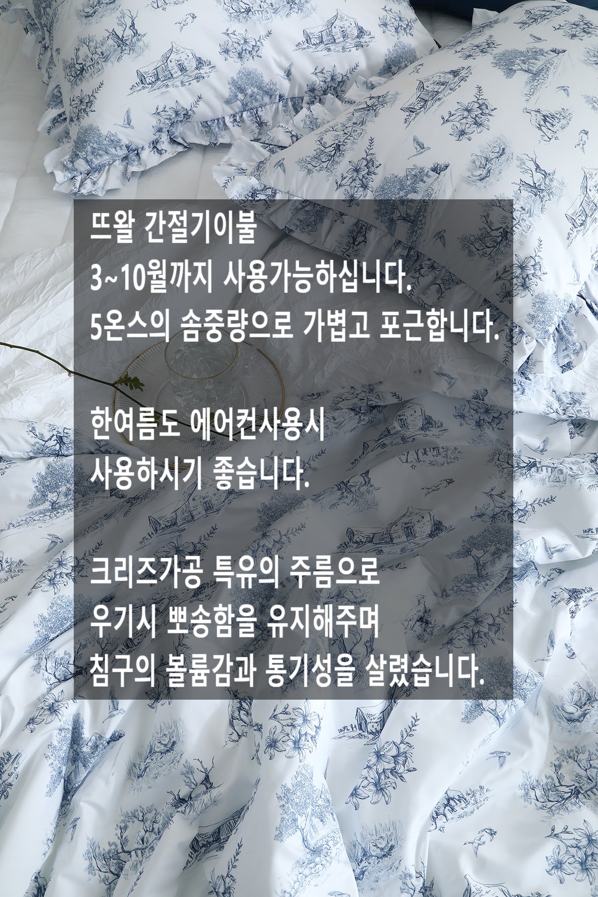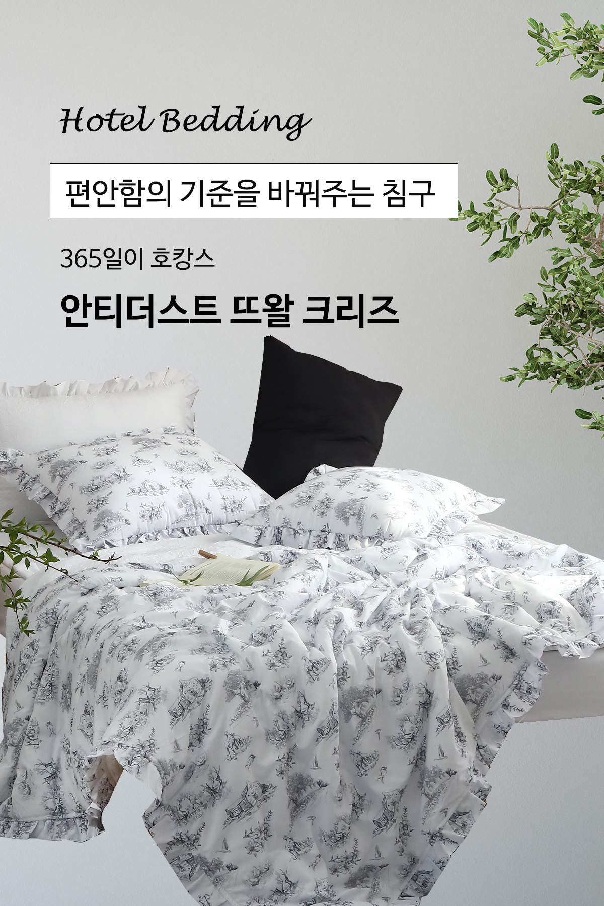먼지와 진드기 걱정없이 쓸 수 있는 안티 더스트 원단으로 더욱 쾌적한 잠자리 ! 피부에도 안전하고, 물세탁이 가능하고 건조가 빨라서 관리가 편하다는 장점까지 그거 아시죠? 관리하기 편한게 사실 최고라는거!!기능은 말해뭐해 ~ 촉감부터 프렌치 디자인까지