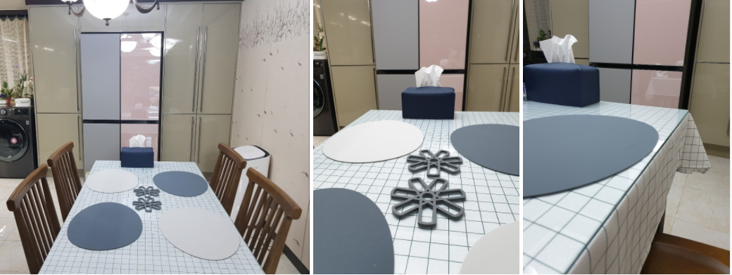 매장고객님 후기사진입니다. 원목식탁이었는데 분위기 바꾸고 싶어 식탁보를 구매하셨는데 집이 젊어진거 같다고 좋다고 후기사진 보내주셨습니다.