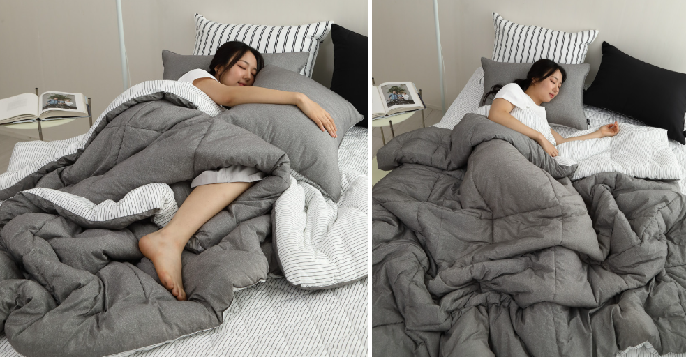 이번에 겨울 대비 침구로 교체했는데 사계절용으로 사용할 수 있어서 활용도가 높네요 ! 피부가 예민한 편이라 촉감에 민감한데 모달 소재라 부드럽고 몸에 착 감겨서 마음에 들어요 ^ ^ 먼지가 덜 나고 물세탁이 가능한 침구라서 위생적으로 사용할 수 있겠어요 ㅎㅎ 양면인데 반대쪽도 스트라이프 패턴이 세련되서 양쪽 다 마음에 들어요 ~