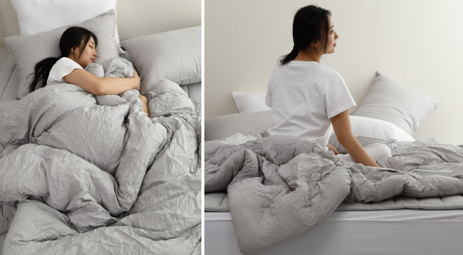 침구의 볼륨감과 통기성을 살렸습니다.