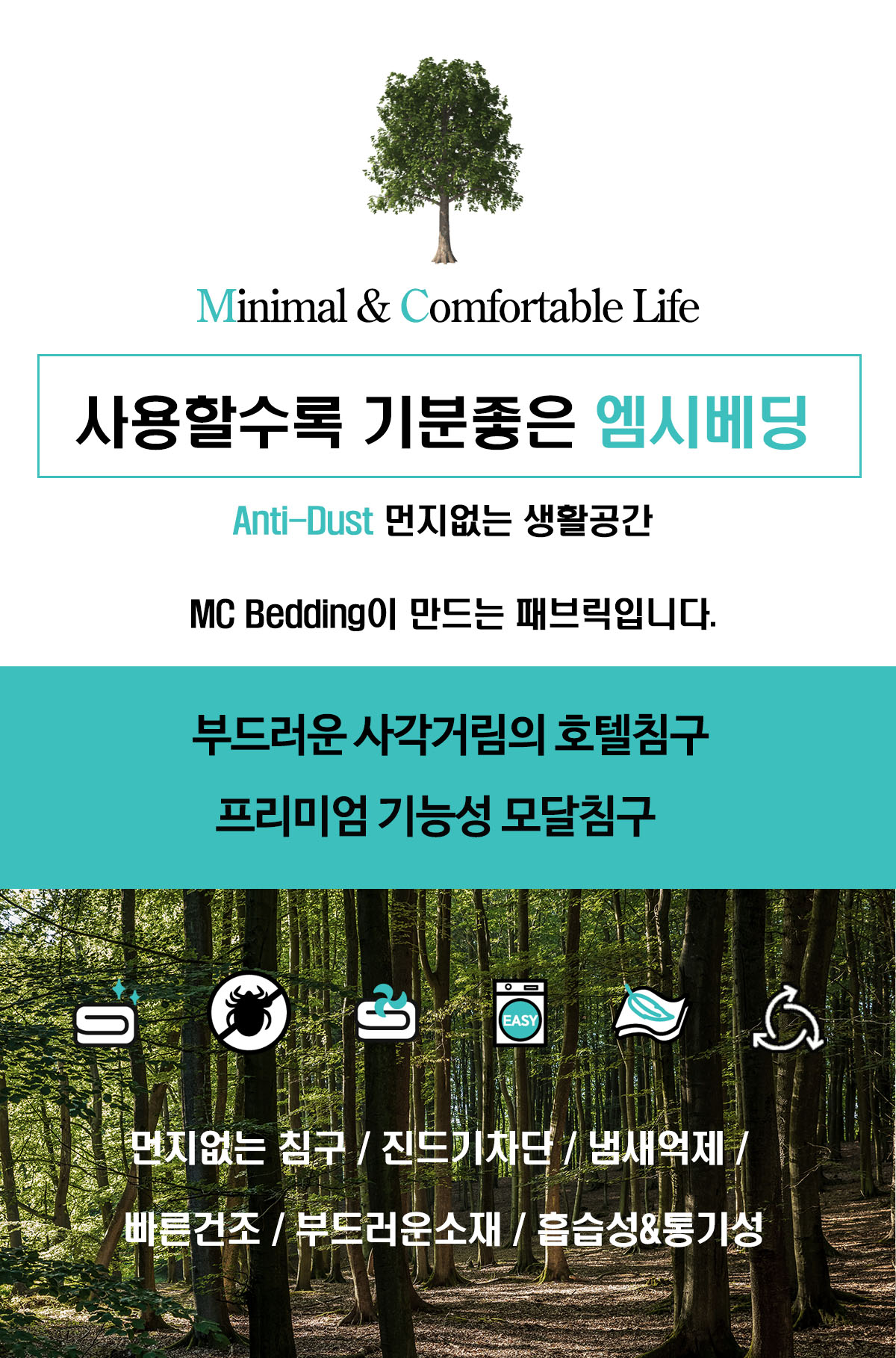 MC베딩 안티더스트침구는 물세탁이 가능하고 건조가 빨라 세탁과 관리가 쉽습니다.