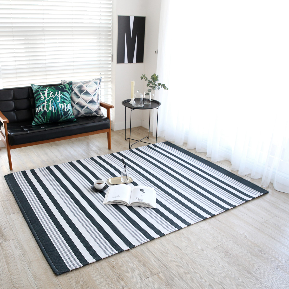 스트라이프 러그 4장을 겹쳤을때 두께 비교사진입니다.