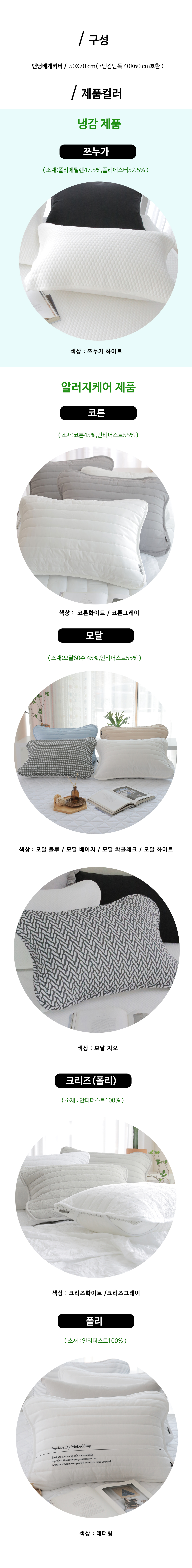 ✔️ 다양한 소재 선택 가능 코튼, 크리즈, 모달.냉감소재 등 원하는 촉감과 스타일로