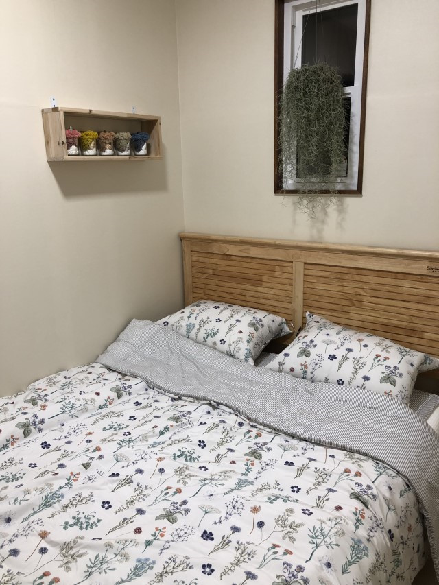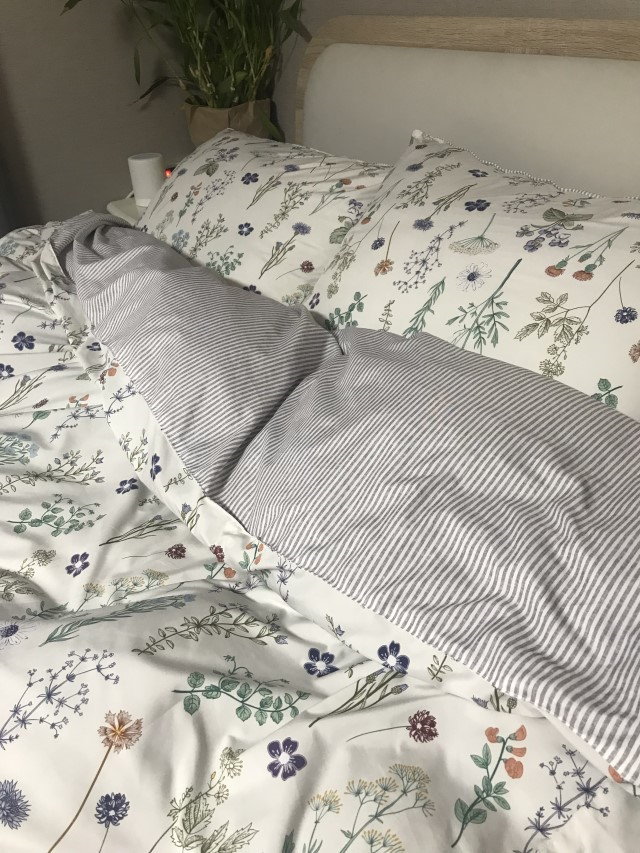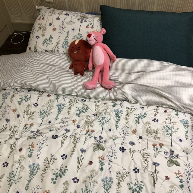 패밀리침대에 사용했어요 먼지 안나는거는 기본이고 프린트된 꽃무늬때문에 방분위기까지 정말 화사해 졌어요.