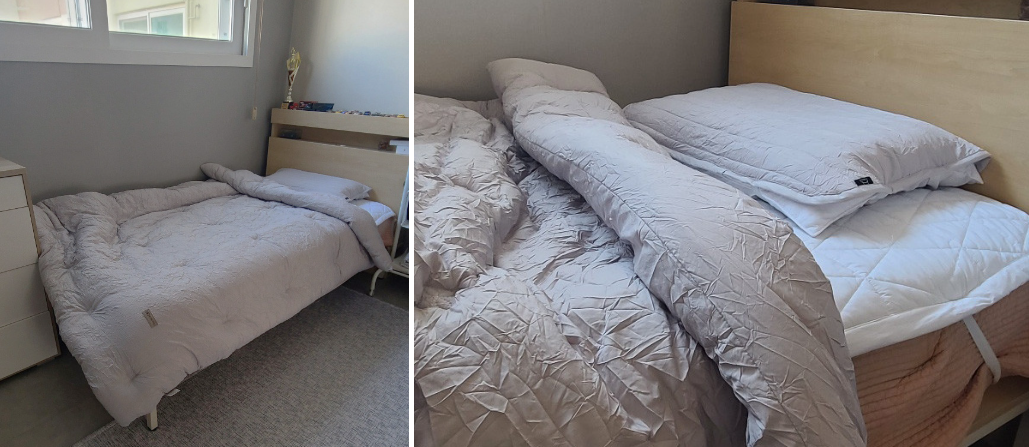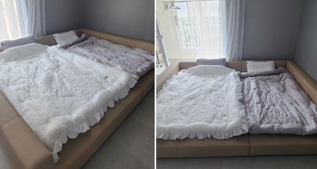 패밀리침대를 사용하는데 아이랑 남편이 알러지비염이 심해서 알아보던중 친구추천으로 알게되었습니다. 싱글사이즈 2개를 구매했는데 너무 부드럽고 가볍고 따뜻하네요