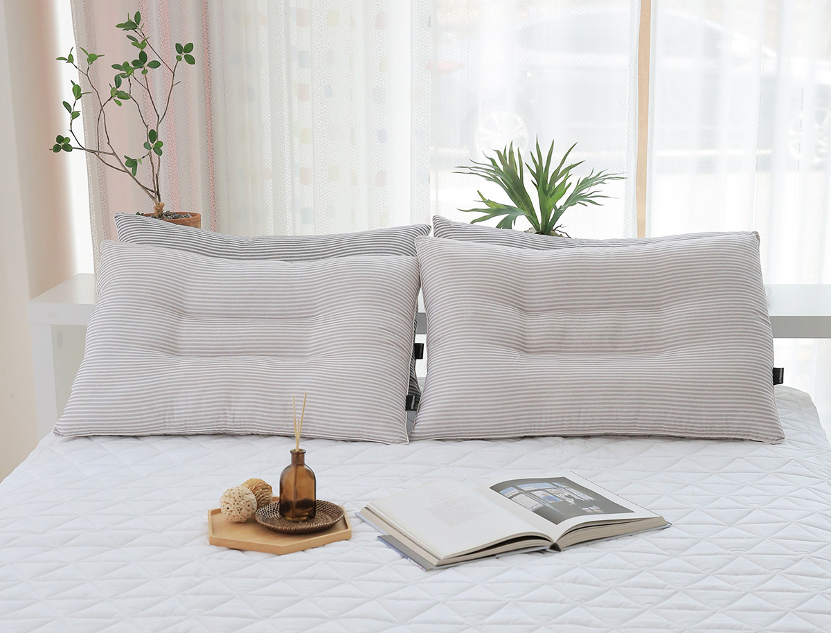 킹사이즈 침대에 크게 배치되어 꿀잠을 자봤어요 신랑도 저도 기절하여 편하게 잘자고 있어요 처음 구매전에는 반신반의했고 받아본 베개는 가운데만 살짝 두줄로약간 패인듯하게만 보였고 전체적으로는 크고 무난한 가로줄무늬로 깔끔하게만 보였는데 일주일정도 잠을 자보니 중간에 자꾸 깨는것 없이 아침에 일어나서 깜짝 놀랬어요 베개의 중요성을 새삼느끼며 저한테는 좋은 베개가 고맙게 느껴져요~^^