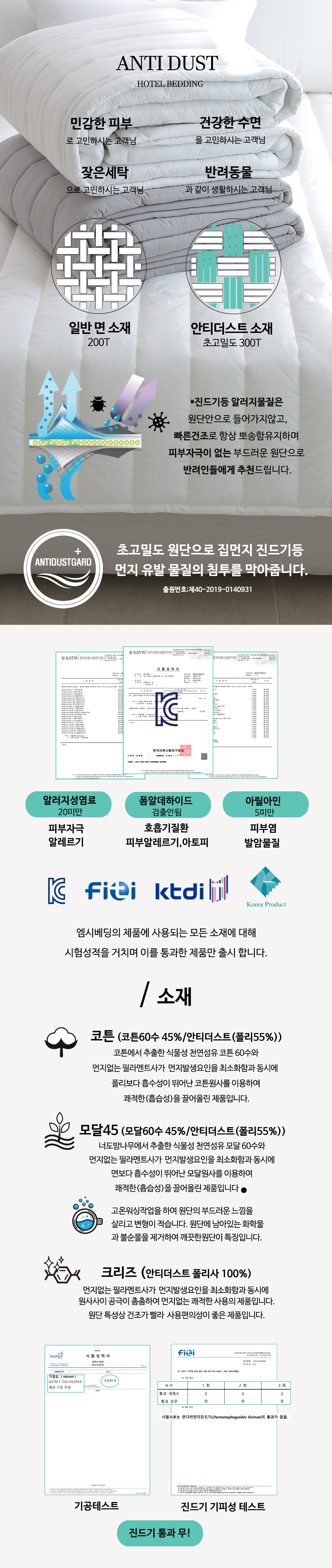 진드기가 기생하지 못하여 위생적사용이 가능합니다.