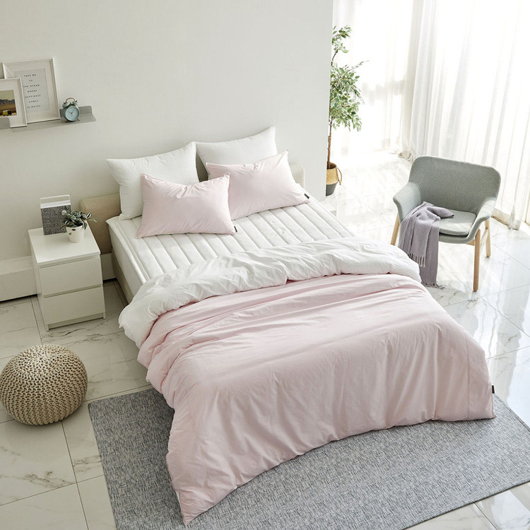 [클리어런스 한정수량 세트가]코튼 호텔침구 연핑크(홑겹) Q+이불솜 세트구성