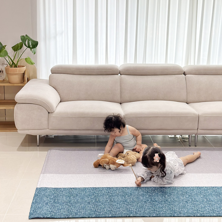 블루 워셔블 거실러그