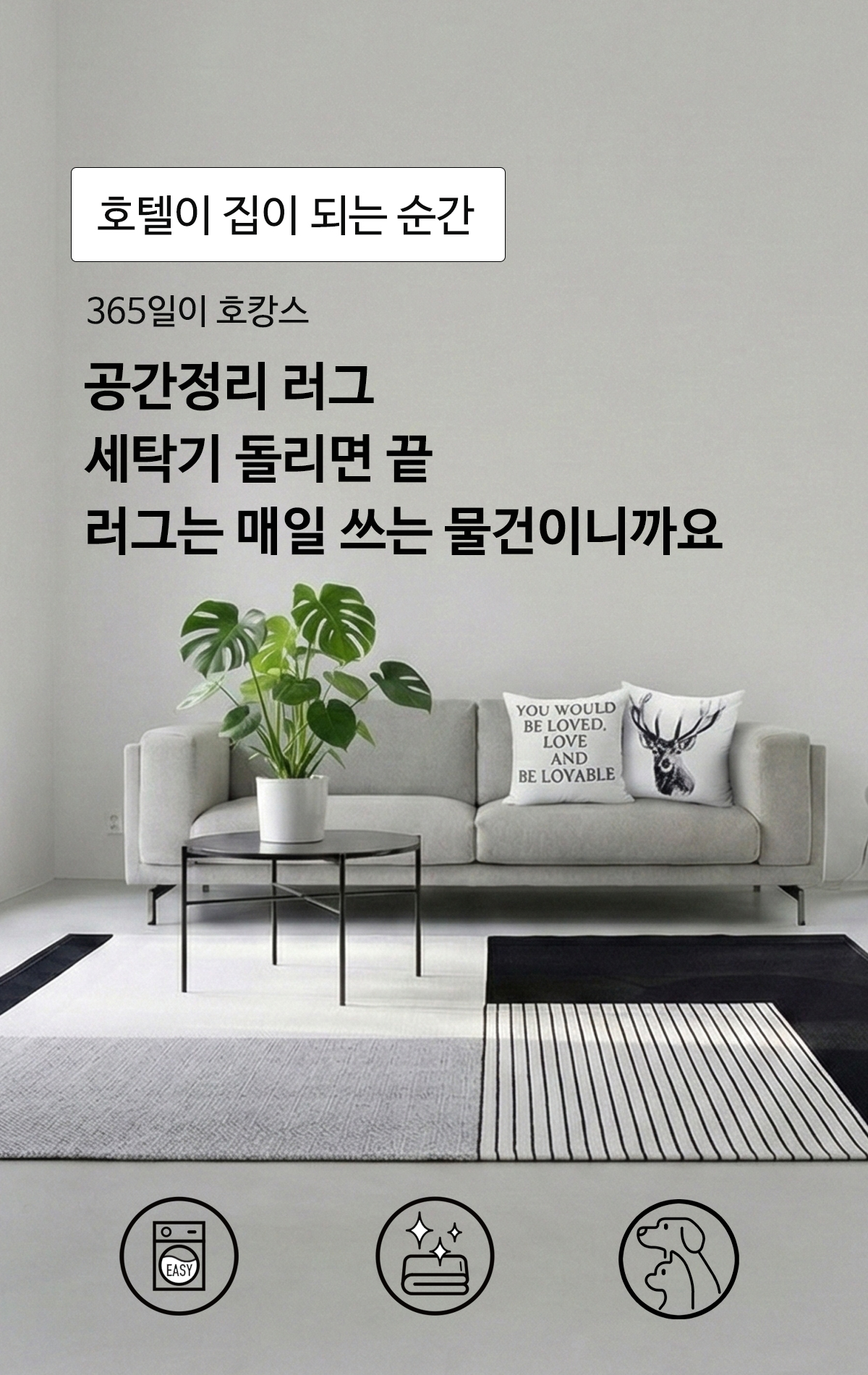 워셔블러그 먼지없는 거실 주방 침실 원룸 방수 펫 러그 | 레터링