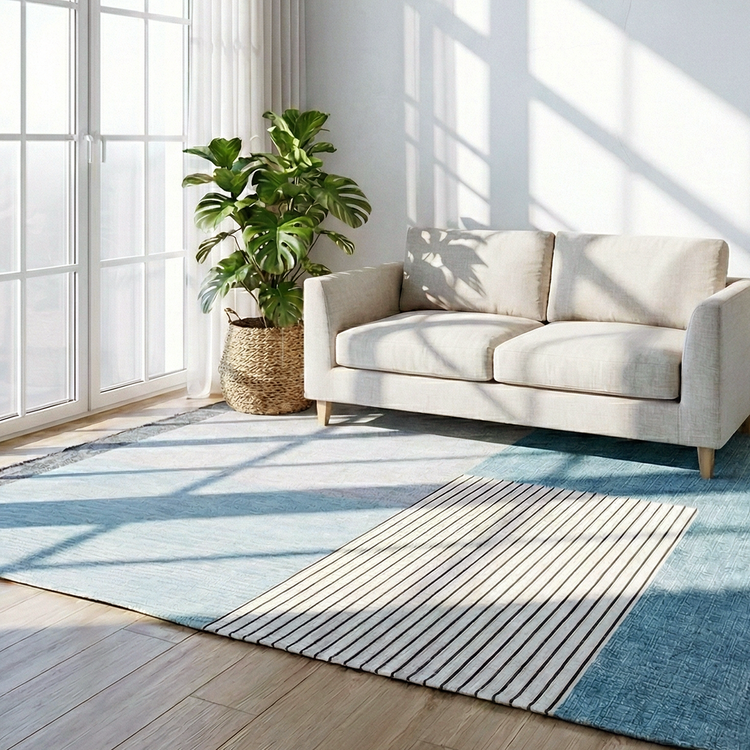 블루 워셔블 거실러그