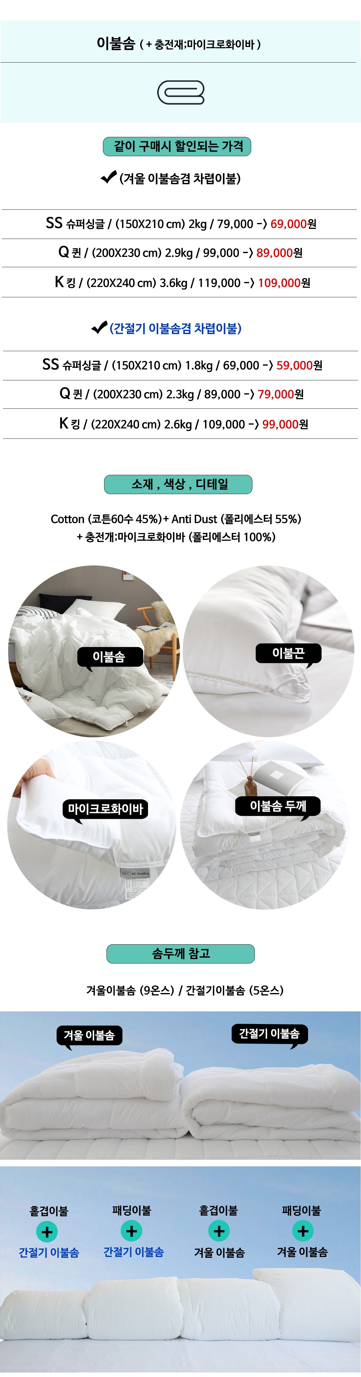 여름.간절기에는 이불솜없이