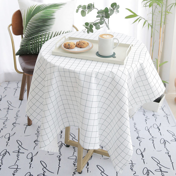 북유럽 심플 모던체크 방수 식탁보 홈카페 4인용 6인용
