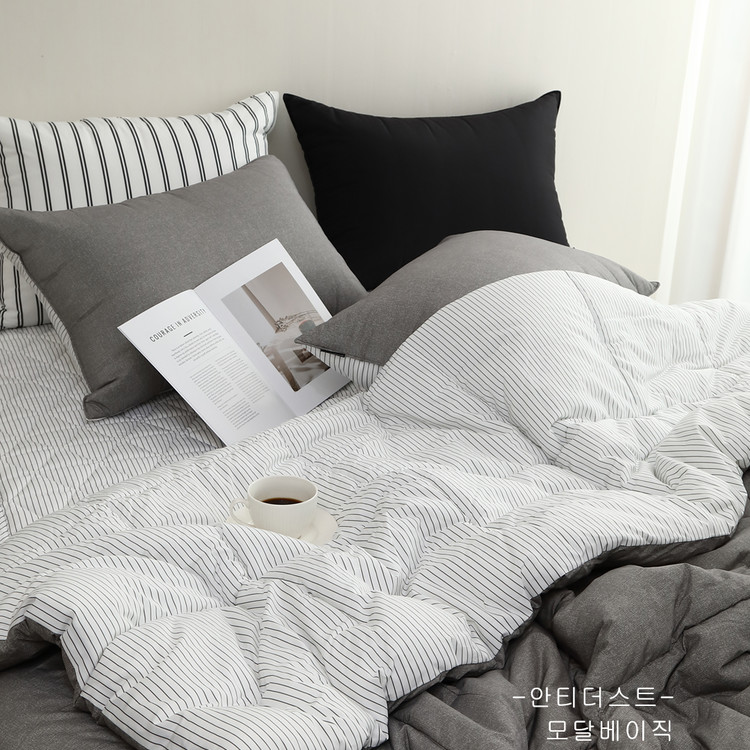 이번에 겨울 대비 침구로 교체했는데 사계절용으로 사용할 수 있어서 활용도가 높네요 ! 피부가 예민한 편이라 촉감에 민감한데 모달 소재라 부드럽고 몸에 착 감겨서 마음에 들어요 ^ ^ 먼지가 덜 나고 물세탁이 가능한 침구라서 위생적으로 사용할 수 있겠어요 ㅎㅎ 양면인데 반대쪽도 스트라이프 패턴이 세련되서 양쪽 다 마음에 들어요 ~